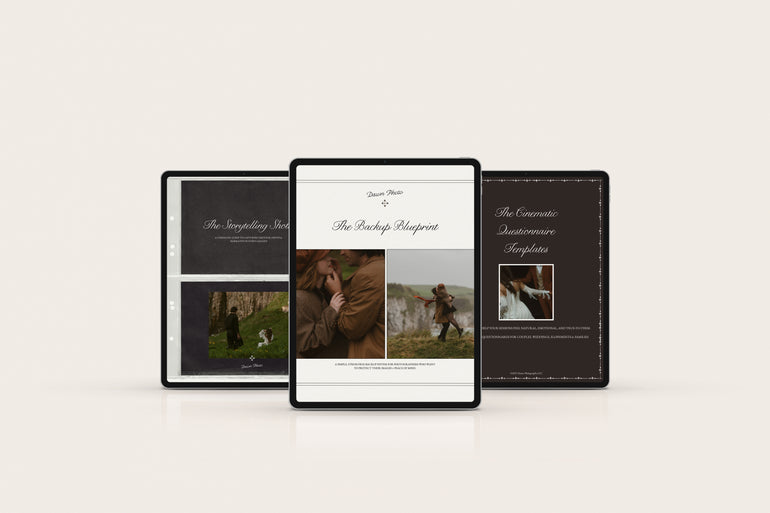 The Cinematic Starter Bundle brings together three core resources designed to help you create intentional, emotional, stress-free storytelling from start to finish. Inside, you’ll get the Cinematic Questionnaires to help you understand your couples on a deeper level, the Storytelling Shot List to guide your direction and flow during sessions, and The Backup Blueprint to keep every image safe with a simple, repeatable workflow.