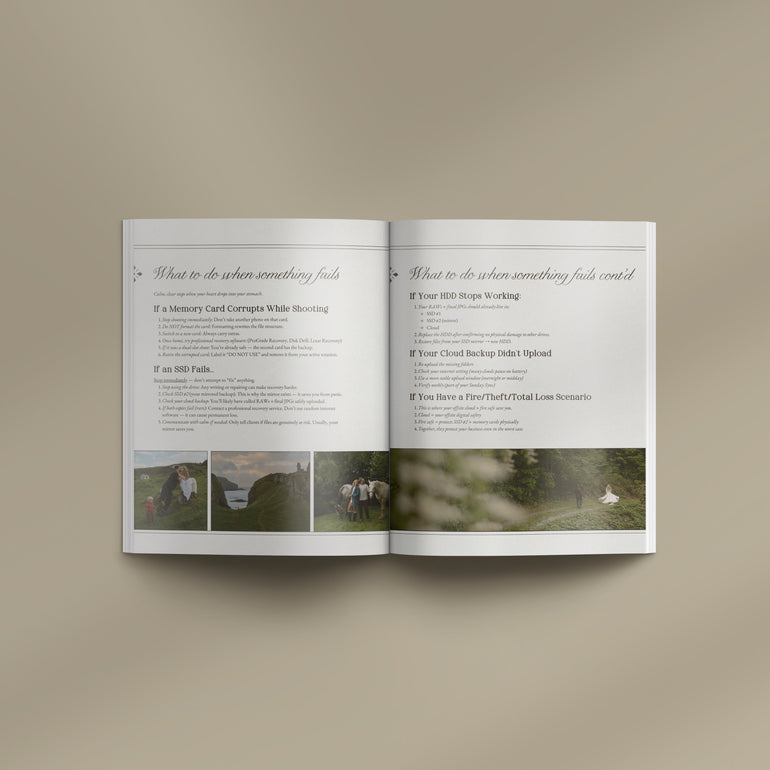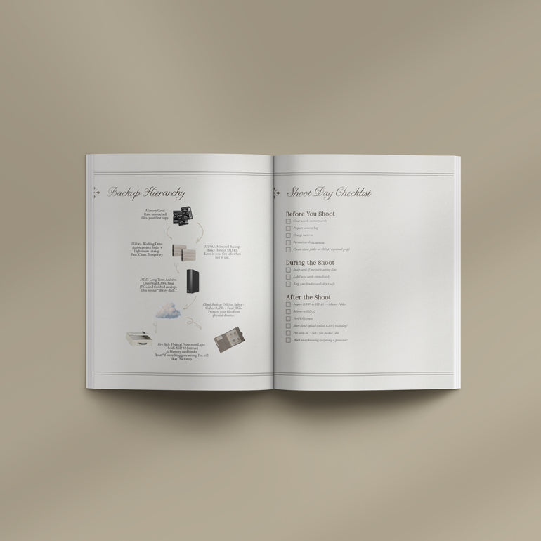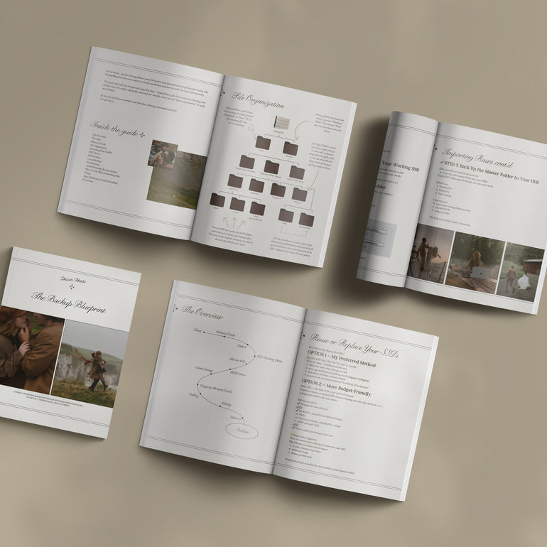 The Backup Blueprint is your straightforward, step-by-step guide to backing up your photos without the chaos. It walks you through exactly how I import, organize, store, and protect every session — using a workflow that’s easy to follow and even easier to stick to.